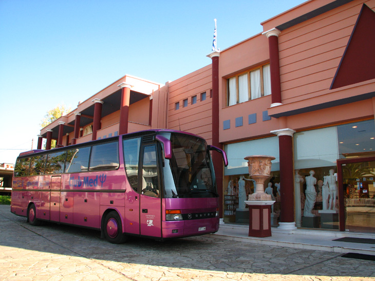 ミケーネ遺跡からバス移動で10分。陶器のおみやげ店へと立ち寄ります。ピンクの建物にピンクのバス。なんか似合ってますね☆