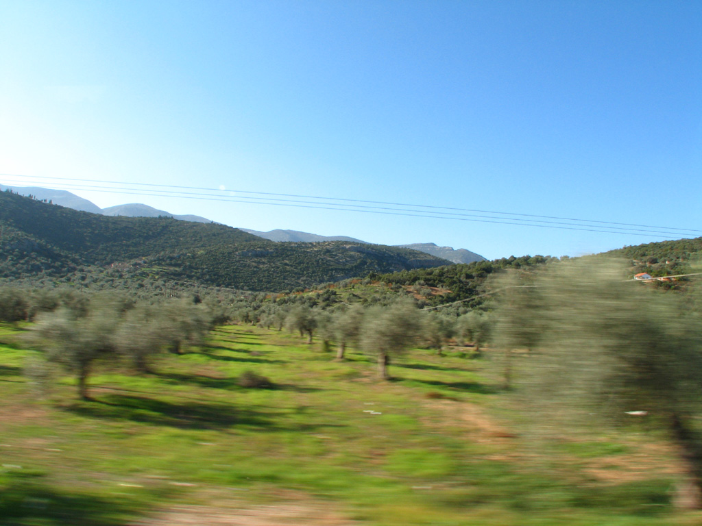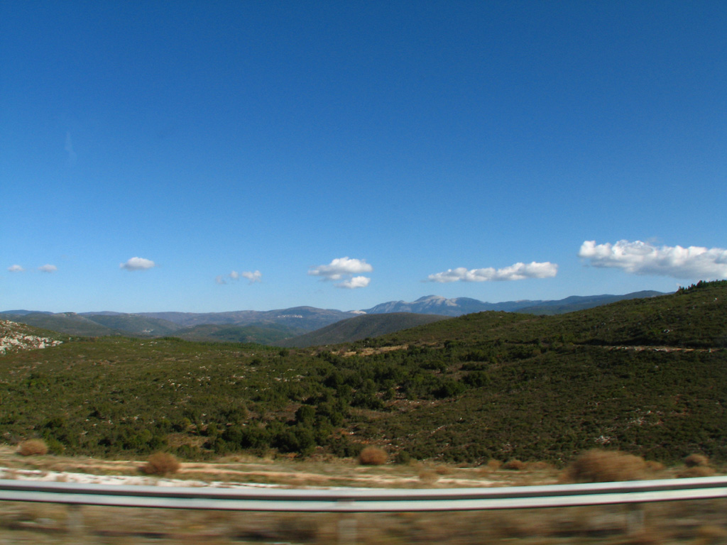 WC休憩が終わり、またバスに乗り込みます。ミストラまでは、見晴らしの良い景色が延々と続いています。暇なので、バスの車窓から数枚ほど撮ってみました。