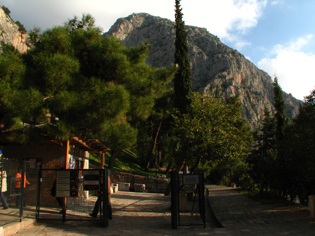デルフィ博物館からデルフィ遺跡は歩いてすぐです。5分ぐらい歩くとデルフィ遺跡の入り口が見えてきました。