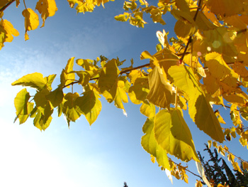 入り口に入ってすぐ左手に、目がくらむほどの眩しい真っ黄色な葉っぱを見つけました。まさかイチョウではないだろうし、なんていう名前の木だろう。すごく綺麗です。他にこんなに目立つ木はないので目印にもなります。