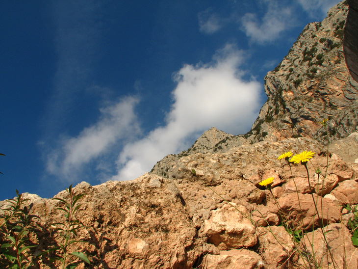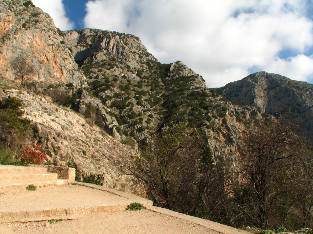 上を見上げると、アポロンの神殿が見えます。山の形も面白いです。