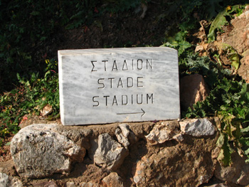 競技場脇に1本の道ができています。まだ、アテナの聖域や体育訓練所などを見ていません。ひょっとしたら、この先にあるのかもしれないけど集合時間が近づいてきてしまったので急いで山を降ります。