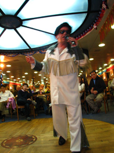 まず、スピーカーが僕の真横にあるんですよね(笑)。歌を歌ったり、ダンス用の音楽を流したりするんだけど、その音がもう、うるさいのなんのって…(^^;)。それと、ダンスショーが始まると外人はストロボ炊いて写真撮りまくり…おいおい、俺が写っちゃうじゃねーか!と思ったけど、1番前の席だしどこにも逃げようがないので撮られるがままでした…(笑)。