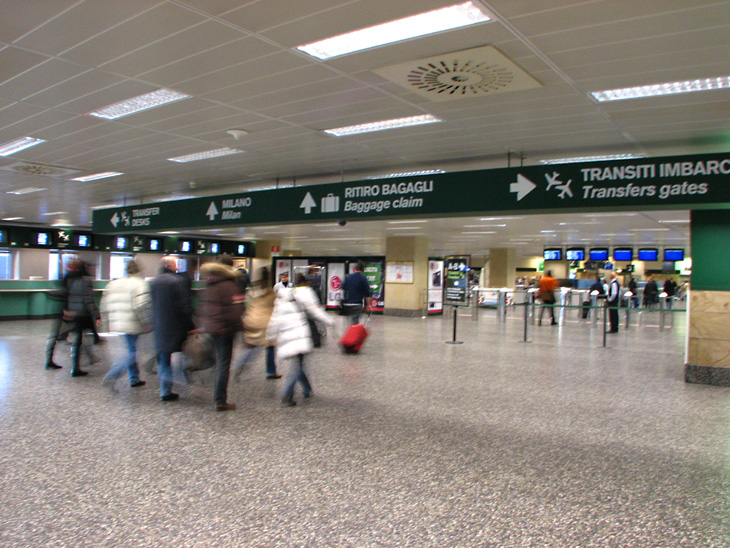 現地時間、15時25分。イタリア・ミラノ空港へ降りたちます。空港の窓ガラスからはアリタリア航空がたくさん見えました。イタリアにやってきたという感じがします。自分が乗ってきた飛行機はどれだろう…。